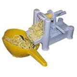 Vegetable Slicer (formerly Spirooli Slicer). The Vegetable Slicer is a practical and innovative way to beautifully shred, slice and chip most vegetables and fruits. It has 3 interchangeable blades. It is easy to use. Prepare gourmet foods quickly like veggie noodles or apple rings. It has suction cups feet to hold it in place while you work. The 3 blades are a slicer, a large noodle, a medium noodle. For small noodles like angel hair style see the Spiral Slicer (formerly Saladacco Spiralizer or garnishing machine). The Spiral Slicer will complete your slicing needs by allowing you to do very fine noodles. I like having both the Vegetable Slicer (formerly Spirooli) and the Spiral Slicer. Read more
