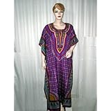 Free Ship Newage Caftan Kimono Sleeve Night Lounge Wear- Violet Ethnic Bohemian Print Xxl (Apparel)