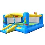 Watch the kids take it to the hole in the Hoops-N-Hops Bounce House! The Island Hopper Hoops-N-Hops 5 Inflatable Bounce House is the ultimate in bouncing and basketball fun. This constant flow forced air product features a huge 10ft x 10ft jumping floor surface, large enough for kids to jump. The front entrance and exit slide feature includes a Velcro closure to keep kids in. Perfect for a birthday party or to just ward off the winter blues. It's a home inflatable gym and amusement park all in one! Features: Double Stitched Reinforced Seams & Reinforced Jump Surface, Puncture & Fire Resistant ASTM Compliant Toy Safety Standards, One Year Blower Warranty / 30 Day Bounce House Warranty, Anchor Stakes, Oversized Carry Bag, Rip & Tear Patch Kit. Model Year: 2011, Product ID: 164571, Shipping Exclusion: This item is only available for shipment by UPS to the lower 48 United States. APO, FPO, PO BOX, Hawaii, and Alaska shipments may not be possible for this item. (Please call prior to purchase.), Special Order: This is a Special Order item, will be shipped from the manufacturer, and is not stocked in our warehouse. All Returns/Exchanges are subject to a 20% restocking fee. This item does not qualify for our Price Matching Policy. Order processing time may vary. Read more