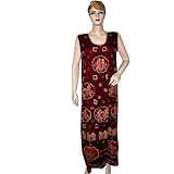 Night Wear Maroon Oriental Print Sleeveless Night Wear Cotton Caftan Kaftan India (Apparel)