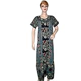 Floral printed on this royal blue and sandrift grey cotton caftan/kaftan. Ideal for summer holidays and warm weather. Perfect for lounging in the patio and these also work great as pool side cover-ups. Read more