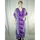 Womens Wear Free Ship Batik Indian Print Purple Kimono Sleeves Satin Caftan Patio Resort Wear Newage Kaftan Free Size (Apparel)