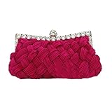 LadyGirl Knit-Style Prom & Party Evening Handbag With Crystals, Clutch Bag, Gift Ideas--Colors Various, Price/Piece -HOTPINK