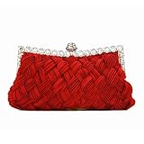 LadyGirl Knit-Style Prom & Party Evening Handbag With Crystals, Clutch Bag, Gift Ideas--Colors Various, Price/Piece -RED