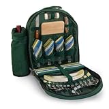 This Sorrento Picnic Backpack w/ Wine Duffle 4-Set Hunter Green - Picnic Time #433-38-121 is perfect for the adventurous picnicker. This backpack is lightweight, compact, and very practical. It is outfitted with a detachable, insulated wine duffel and all the amenities needed for a picnic for four. The backpack features pockets/compartments for all of its accessories. The large food compartment, featuring state-of-the-art Thermo-Guard insulation, will help keep your picnic hot/cold for hours. Great for picnics, hikes, concerts, and sporting events. Just pack it up and go! Includes: 4 Plates (melamine 9 in.) 1 Cheese knife (stainless steel w/wood handle) 4 Wine glasses (polystyrene) 4 Napkins (cotton 13 x 13 in.) 4 Ea. Knives forks & spoons (stainless steel) 1 Tablecloth (cotton 41 x 44 in.) 1 Cutting board (wood 6 x 6 in.) 1 Set of salt/pepper shakers 1 Corkscrew (waiter style - stainless steel)