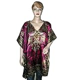 Bohemian Ethnic Print Magenta Silk Satin Short Caftan Resort Wear Kaftan (Apparel)