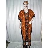 Copper Black Elephant Print Kimono Sleeves Caftan Kaftan India (Apparel)