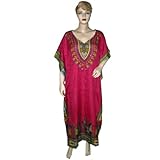 Evening Dress Womens Ethnic Print Satin Crepe Caftan Kaftan Dark Pink Resort Wear (Apparel)