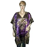 Womens Silk Satin Caftan Burst Hippy Ethnic Printed Short Bohemian Resort Dress (Apparel)