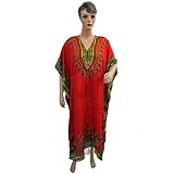 Resort Wear Womens Printed Satin Crepe Caftan Kaftan Red Green Evening Dress (Apparel)