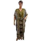 Womens Lounge Wear Gypsy Boho Olive Green Elephant Print Kaftan Beach Wear Caftan Dress (Apparel)
